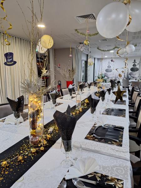 Grâce à leur motivation et à leur créativité, la résidence s’est parée d’une atmosphère chaleureuse, presque comme à la maison. Le restaurant, lui, a été sublimé par de magnifiques décorations de table, élégantes et scintillantes, créant un cadre parfait pour partager des moments gourmands et conviviaux.
