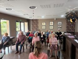 🤸 Un cours de gymnastique dans le salon a permis à chacun de bouger en douceur, avant un temps fort de la journée : une séance de sensibilisation animée par notre infirmière, qui a su transmettre des informations claires et utiles sur le cancer du sein, ses facteurs de risque et l’importance du dépistage.